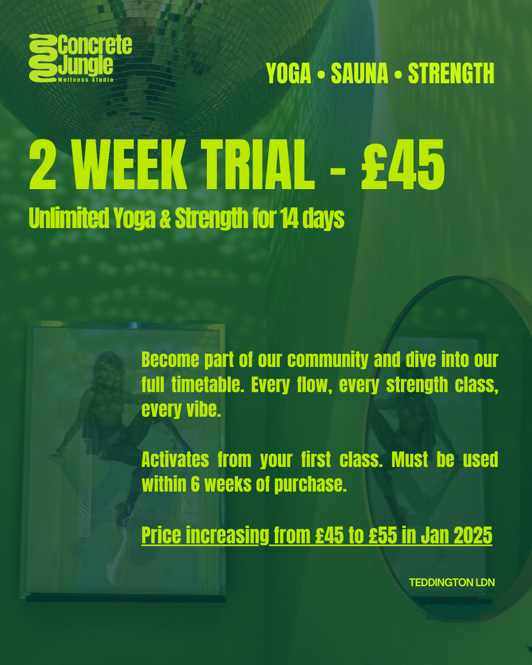 At Concrete Jungle, we’re a yoga-first wellness studio in the heart of Teddington. We believe movement should support real life, not the other way around.